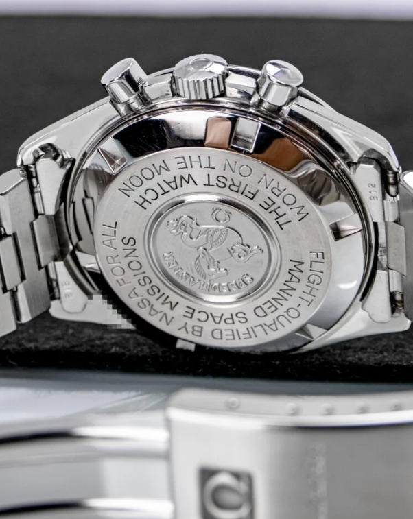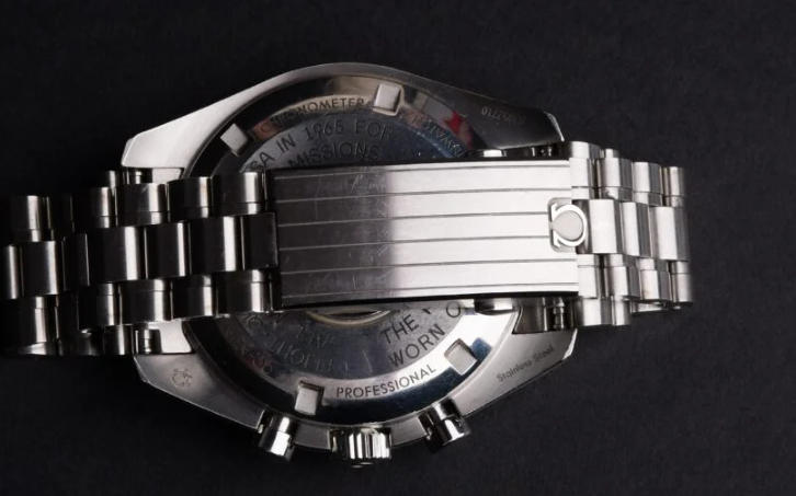 The build quality and feel of the cheap clone Omega Speedmaster Professional watches are of the highest standard. But does this also apply after three years? The aluminum bezel shows no wear and tear whatsoever, and still looks like it did on day one. The crown, chronograph pushers, and clasp function perfectly. The steel bracelet still wears excellently. What is particularly pleasing is that it is not only rounded on the outside, but also on the inside – a detail that some competitors such as Rolex could certainly also do. The fine brushing of the bracelet and clasp also deserve a mention. Signs of wear are rarer than on my other watches, and any scratches that have managed their way onto my Speedy are barely visible. One critical point is the Hesalite crystal. Although it’s made of plastic, and therefore more susceptible to scratches, it’s proven to be more robust than you would expect. With Polywatch, even coarse scratches can be easily removed. For me, the Hesalite crystal is not a drawback of this watch, but a feature that makes it unique. On the other hand, I noticed something negative about the steel solid case back: it seems much more sensitive to scratches than the case and bracelet.