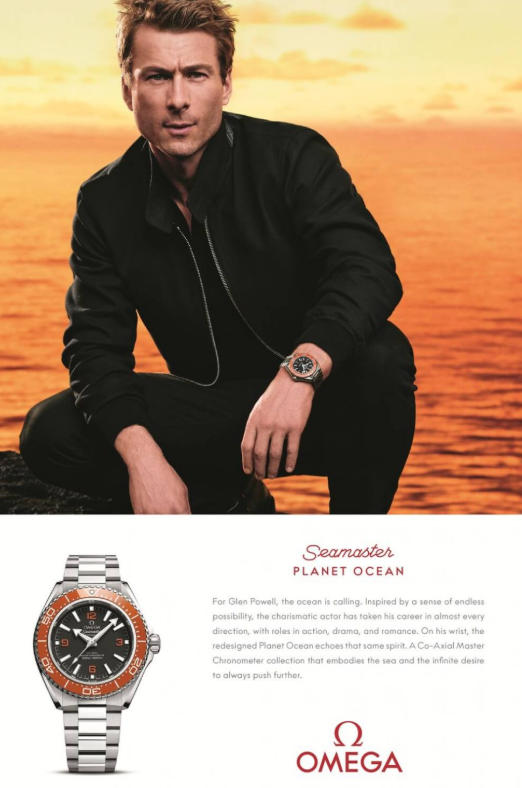 OMEGA President and CEO Raynald Aeschlimann notes that the ocean has shaped the brand since its first diving watch in 1932. He explains that the new Planet Ocean collection builds on this legacy and aligns it with ambassadors who reflect the same spirit in their own work. Aaron Taylor-Johnson, who wears the new blue model in the campaign, speaks about his personal connection to the Seamaster and calls it the watch he wears every day. He also shares that he is proud to carry the Planet Ocean story forward. Glen Powell appears in the signature orange version tied to 1:1 Omega copy watches diving heritage, and he highlights the authenticity of the brand’s relationship with the ocean, noting that few companies can claim it in the same way.